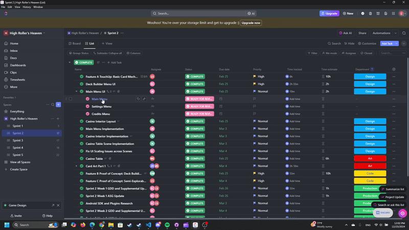 As Producer and Team Lead, project organization was my responsibility, tasked with creating tasks, assigning them, monitoring progress and quality, and ensuring the completion of all work in a timely and efficient manner.